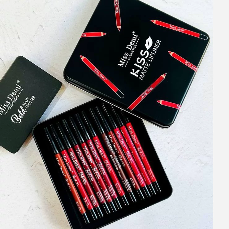 پک خط لب 12تایی جعبه فلزیMiss Demi