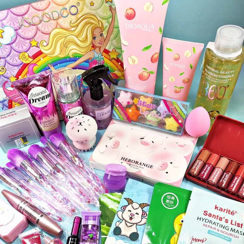 پالت سایه بزرگ،لوسیون بدن،عطرمو،بادی اسپلش،فیس واش،بیوتی بلندر،نمک بدن،فوم شستشوی صورت،ست براش۱۰تایی الماسی،ماسک ورقه ای،پک رژلب خوک،پک رژلب بندانگشتی ستاره اس،پک رژلب ۶تایی مایع،ژل ابرو اصل مورلی،ریمل،تونر،بالم لب،جالنزی،تینت لب،شاین لب،برق لب،گلیتر مو