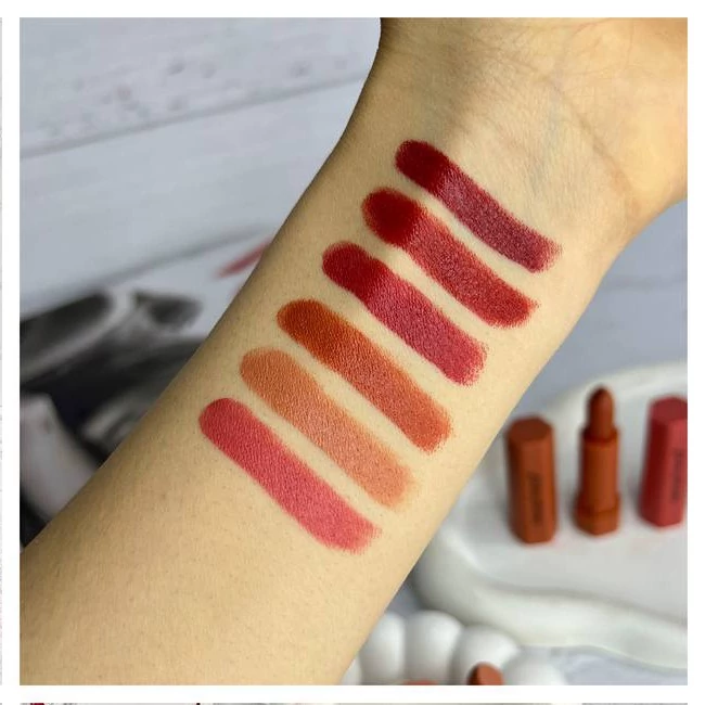 داخل هر پک6تا رژلب جامد +اینه پیگمنت بالایی داره بسیار سبک هستن روی لب پوست پوست نمیشن روی لب بسیار باکیفیت توجه کنید مینی سایز هستن