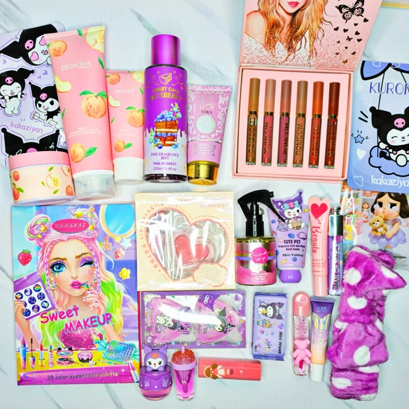 آیتم های داخل پک پک ماسک ورقه ای،نمک بدن،فوم شستشوی صورت اسکراب صورت،لوسیون بدن،کرم دست، پک رژلب،پالت سایه،بادی اسپلش،پک بالم لب برق لب رژگونه حرارتی،بالم لب،برق لب،عطرمو،پک پدکرومی هدبند حوله ای،دستمال مرطوب،شاین لب ارسال به سراسر کشور داریم بعد از ثبت سفارش هر تغییری بخاین انجام میدیم