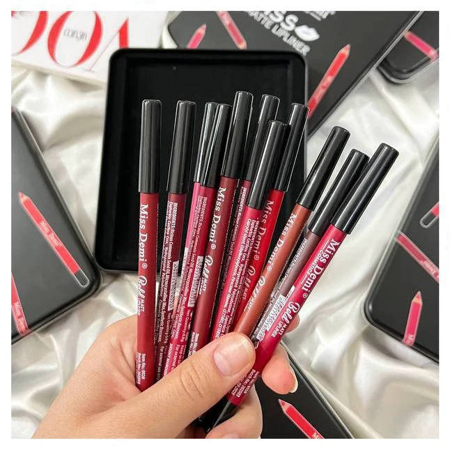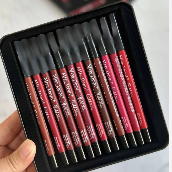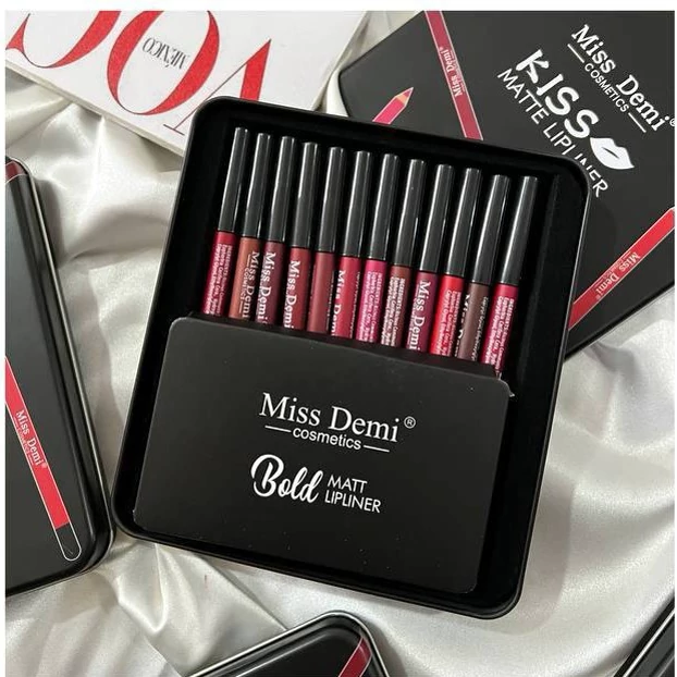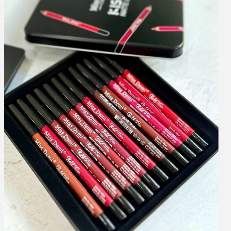 ✅پک خط لب 12تایی جعبه فلزی نیس دمی✅ ⭕یه بسته بندی شیک داره که مناسب هدیه دادن هست ⭕داخل هر پک12رنگ جیغ و نود داره ⭕بسیار نرم و روان کشیده میشه ⭕رنگدهی بالایی داره ⭕بسیار باکیفیت ⭕دسته کوتاه ⭕انقضا2030