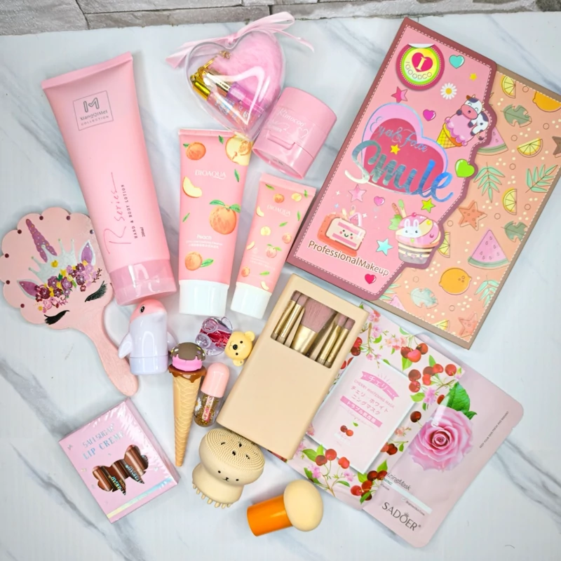 پک لوازم آرایشی با رنگ نود و ملیح صورتی🩷